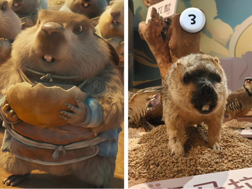 旱獭是影片中“土拨鼠”的角色原型。旱獭是啮齿目松鼠科旱獭属的一种大型哺乳动物,它们体型粗壮,颈粗吻阔,耳小眼细,四肢粗短,尾短而尖,体毛短而粗,这些特征使得旱獭在外观上既似鼠又像兔,憨态可掬。