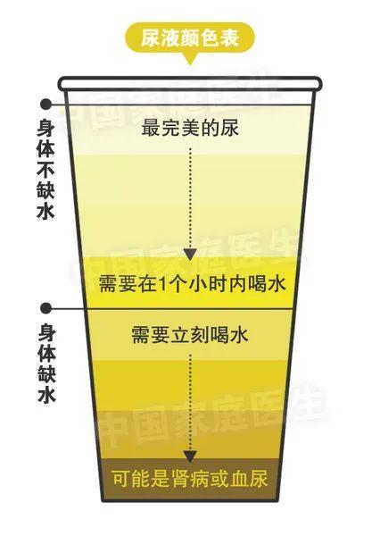 当体内缺水时,按不同程度,尿液可呈现出淡黄至深黄色;