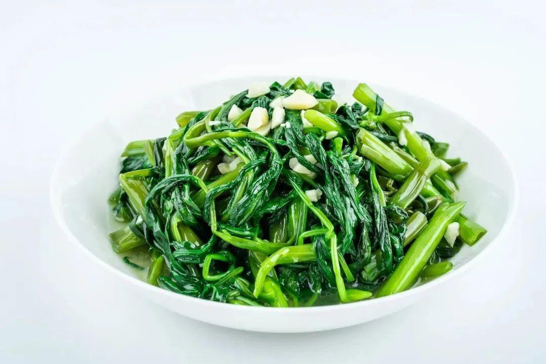大多数绿叶菜的膳食纤维含量约为1.2~2.2克/100克,而空心菜的膳食纤维含量约为1.9~3.1克/100克。空心菜丰富的膳食纤维可以增进肠道蠕动,对控制体重、平稳血糖、改善血脂、缓解便秘、调节肠道菌群均有一定益处,对于减少肠道癌变也有积极作用。