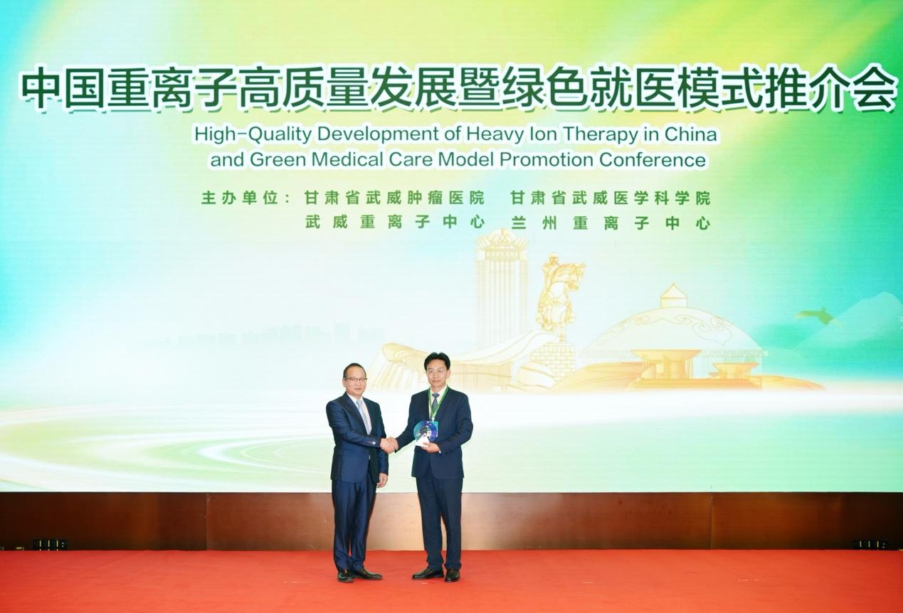 中国人寿“百万医疗+重离子就医绿色通道”项目负责人(武威分公司)总经理蒋伟详细介绍了“百万医疗重离子治疗绿色通道”项目;中国南航集团文化传媒股份有限公司销售总监陈苏华介绍“绿色就医航空高质量服务”项目;甘肃省武威肿瘤医院院长叶延程则作了题为“重离子医院建设及五周年临床报告”的主题分享,全面介绍了重离子治疗技术的建设成果与临床应用实践情况。