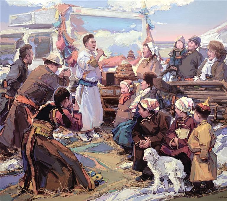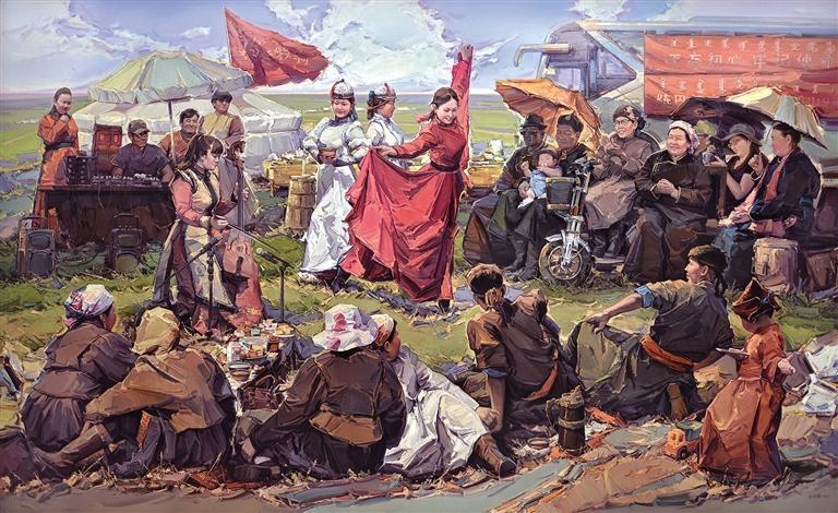 在艺术的殿堂里,总有那么一些作品,以其独特的魅力和深刻的内涵,成为时代的见证。著名油画家张可扬的两幅作品——《草原上的乌兰牧骑》和《草原深处党旗红》,便是这样令人瞩目的传世佳作。这两幅作品分别被中国共产党历史展览馆收藏,并且在庆祝中华人民共和国成立75周年主题美术作品展览中展出,作品充分表现了内蒙古人民的奋斗精神和党的光辉形象,是内蒙古近年来主题美术创作中的精品力作。