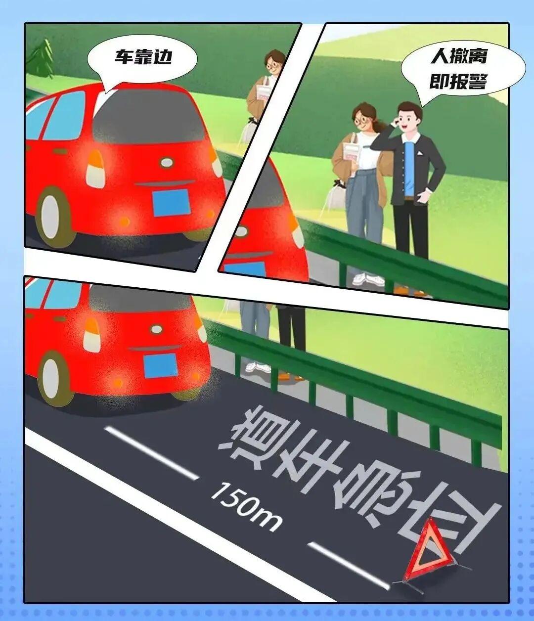 6、牢记“九字诀”。发生事故后,由于采取措施不当等方面原因极易引发二次事故,且通常比第一次事故的危害后果更大。如不慎发生事故,牢记九字诀——“车靠边、人撤离、即报警”,千万不要站在道路中间,以免受到“二次事故”伤害。